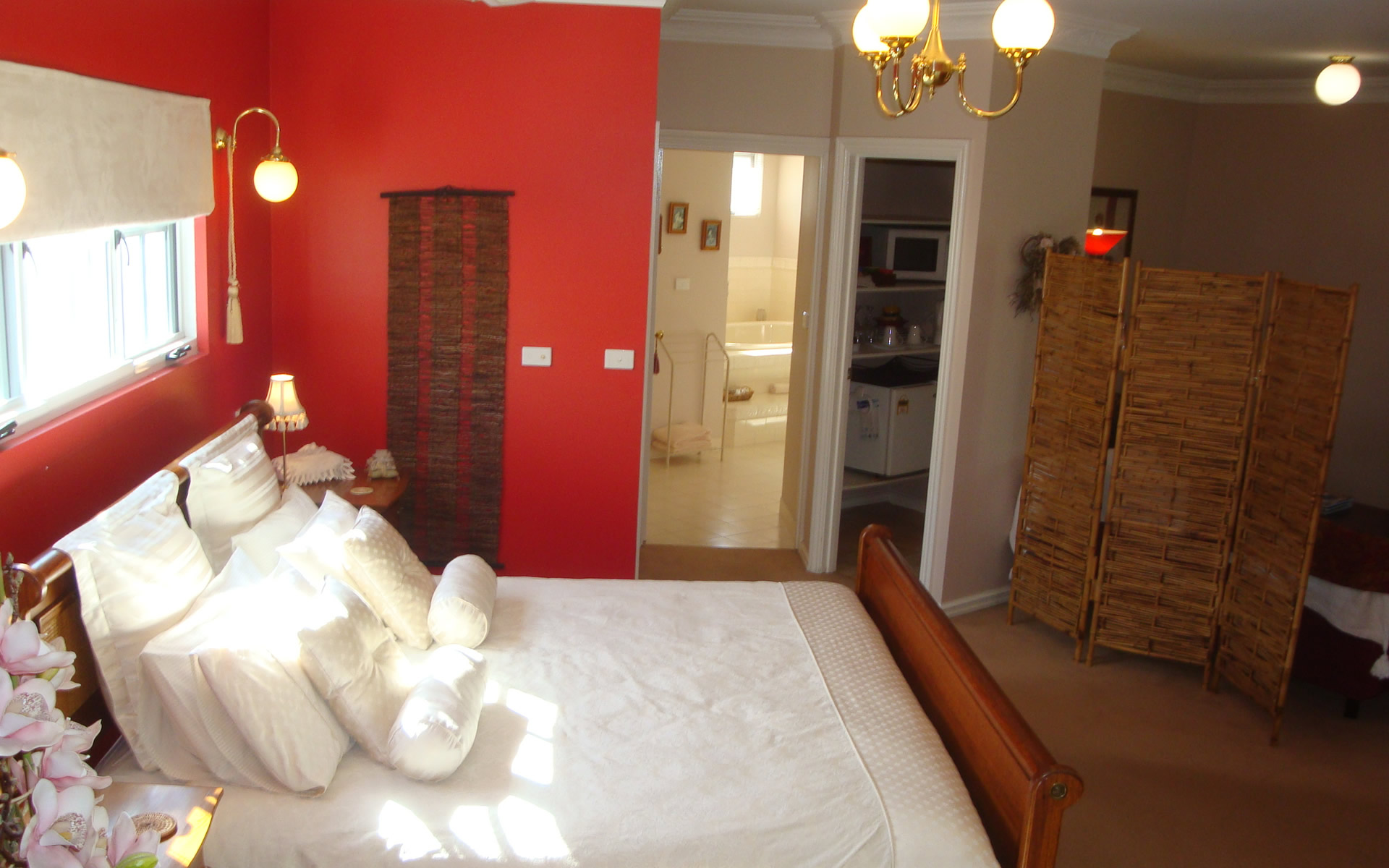 In the ensuite you will find an array of quality toiletries, together with hair dryer, fluffy bathrobes and towels. Separate enclosed toilet. This suite is upstairs.